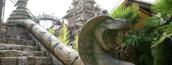 This photograph shows what appears to be a wooden barrel that has collapsed. You can find this along side Indy’s Jeep at Indiana Jones et le Temple du Péril. The metal hoops that once held together the strips of wood have fallen in to a very convenient arrangement.